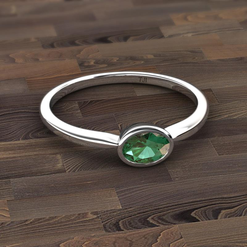 A fresh take on the classic solitaire ring, this contemporary ring has Oval cut Lab Created Alexandrite horizontally set which makes it stunning.