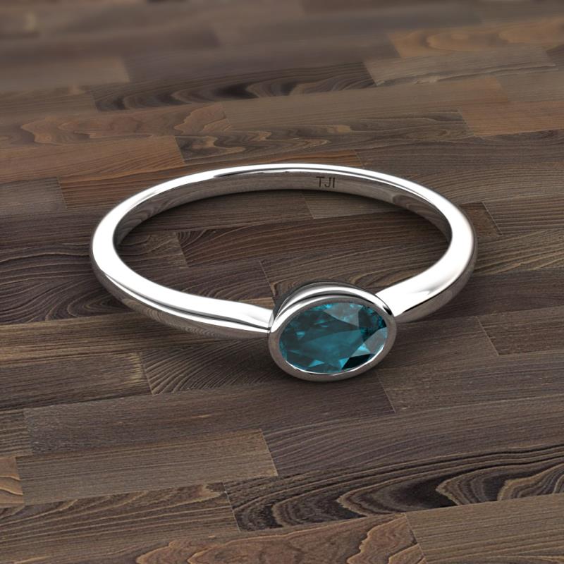 A fresh take on the classic solitaire ring, this contemporary ring has Oval cut London Blue Topaz horizontally set which makes it stunning.