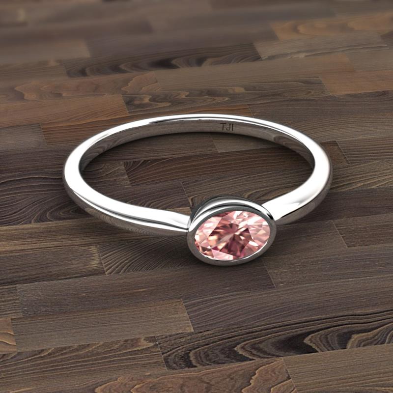 A fresh take on the classic solitaire ring, this contemporary ring has Oval cut Morganite horizontally set which makes it stunning.
