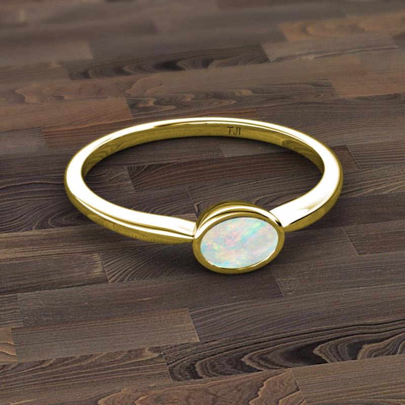 A fresh take on the classic solitaire ring, this contemporary ring has Oval cut Opal horizontally set which makes it stunning.