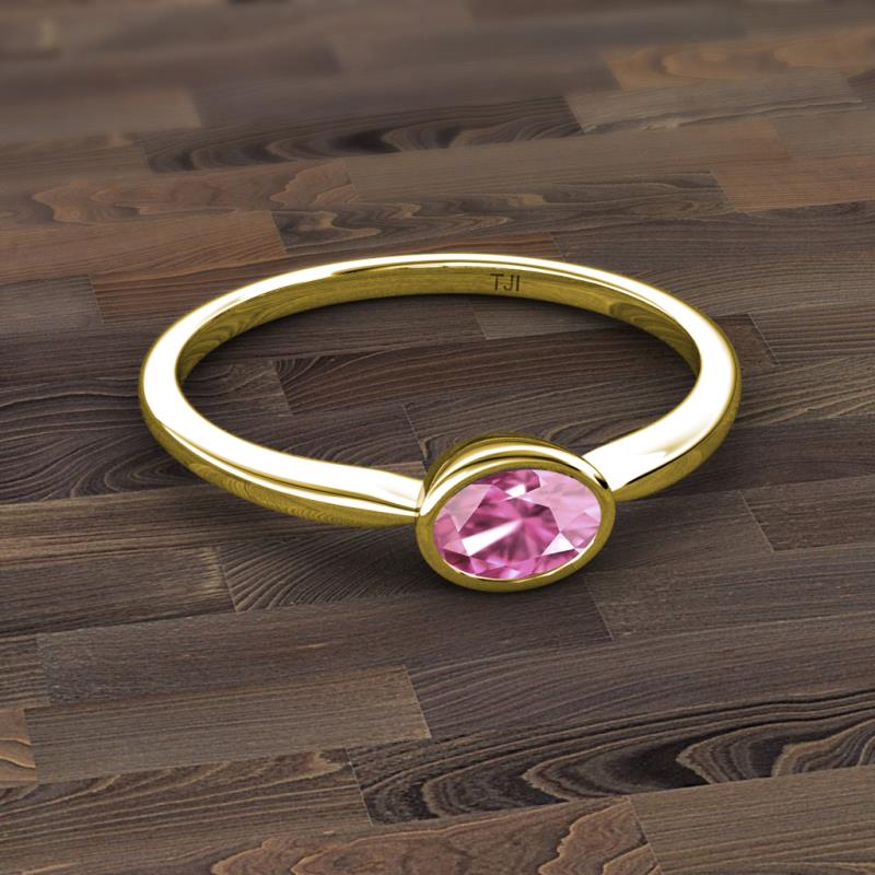 A fresh take on the classic solitaire ring, this contemporary ring has Oval cut Pink Sapphire horizontally set which makes it stunning.