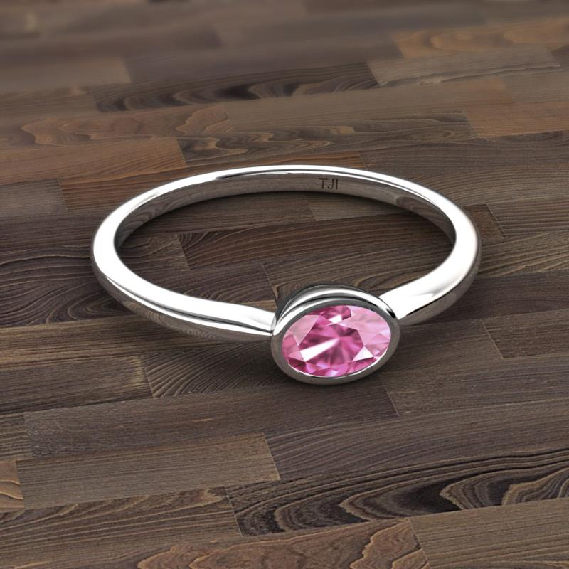 A fresh take on the classic solitaire ring, this contemporary ring has Oval cut Pink Sapphire horizontally set which makes it stunning.