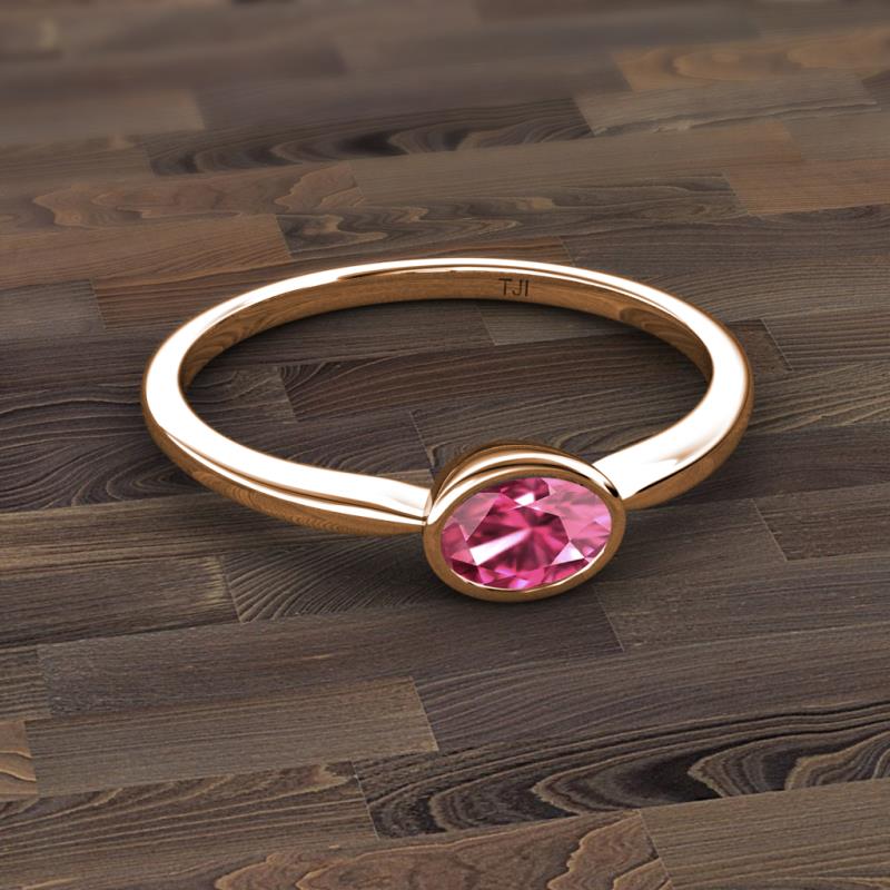A fresh take on the classic solitaire ring, this contemporary ring has Oval cut Pink Tourmaline horizontally set which makes it stunning.