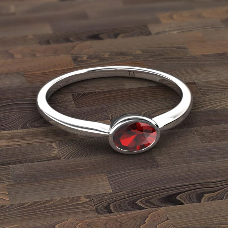 A fresh take on the classic solitaire ring, this contemporary ring has Oval cut Red Garnet horizontally set which makes it stunning.