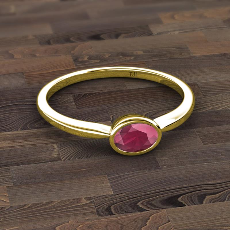 A fresh take on the classic solitaire ring, this contemporary ring has Oval cut Rhodolite Garnet horizontally set which makes it stunning.
