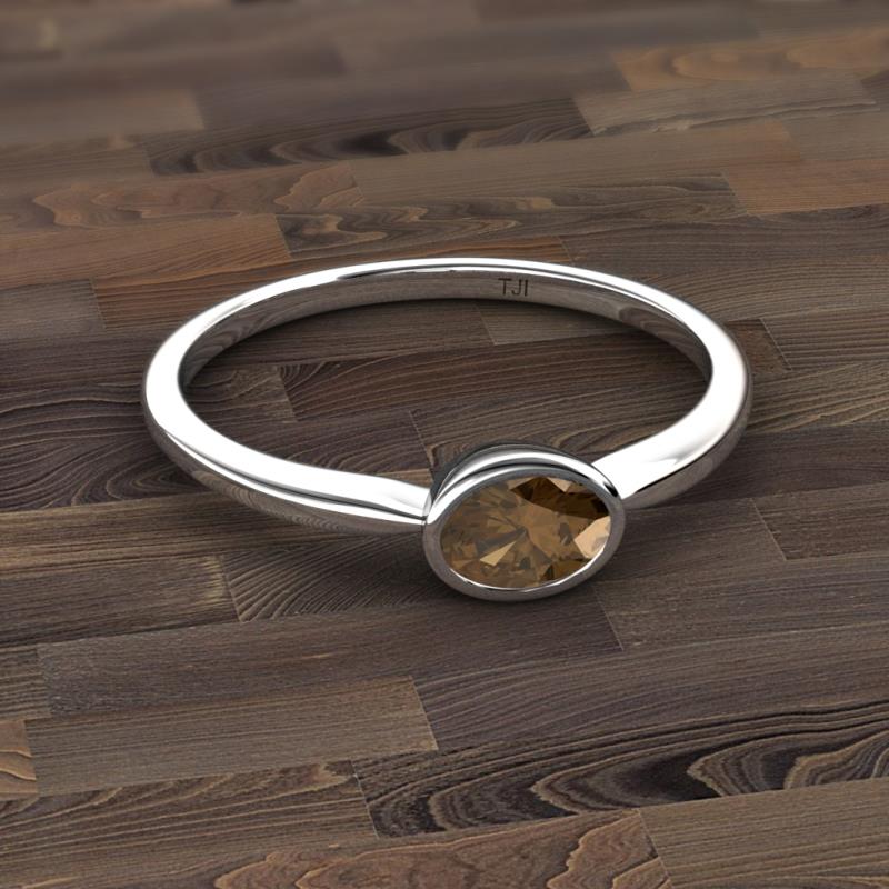 A fresh take on the classic solitaire ring, this contemporary ring has Oval cut Smoky Quartz horizontally set which makes it stunning.