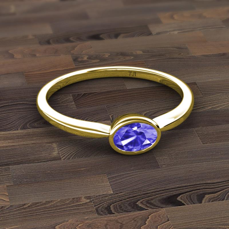 A fresh take on the classic solitaire ring, this contemporary ring has Oval cut Tanzanite horizontally set which makes it stunning.
