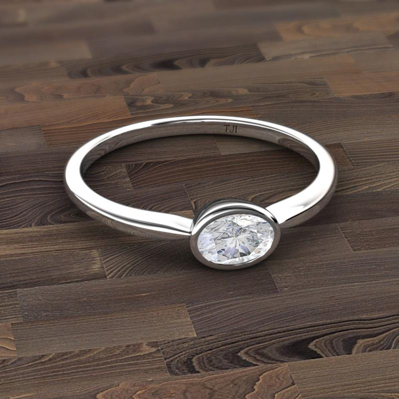 A fresh take on the classic solitaire ring, this contemporary ring has Oval cut White Sapphire horizontally set which makes it stunning.