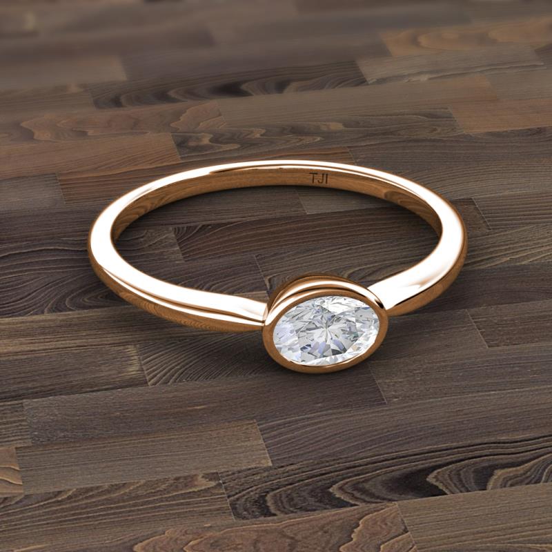 Oval Cut (7x5 mm) White Sapphire 0.95 ct Womens East West Solitaire Engagement Ring 10K Rose Gold More Details ...