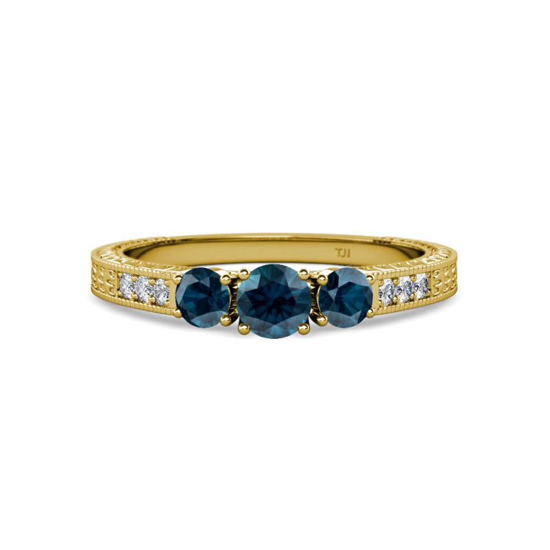 Round Blue Diamond Milgrain Womens Three Stone Engagement Ring with Diamond on Side Bar 3/4 ctw 14K Yellow Gold More Details ...