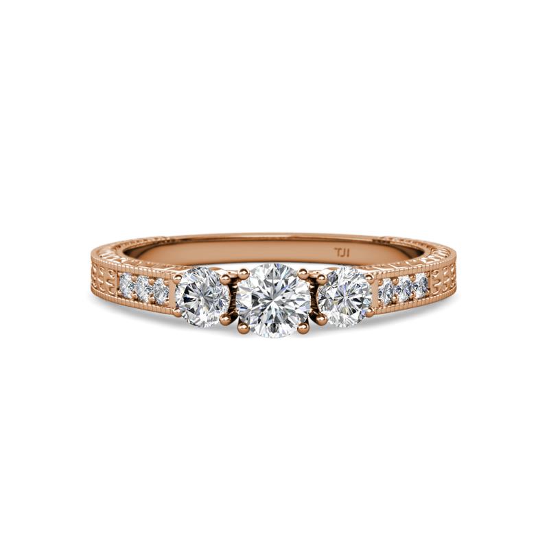 Round Diamond 3/4 ctw Milgrain Womens Three Stone Engagement Ring with Diamond on Side Bar 14K Rose Gold More Details ...