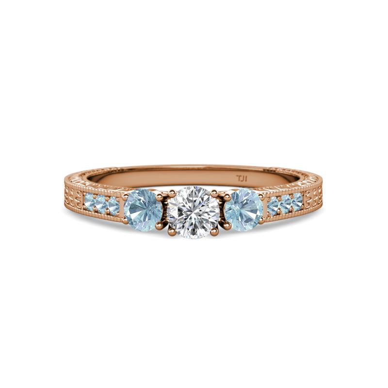 Round Diamond and Aquamarine 3/4 ctw Milgrain Womens Three Stone Engagement Ring with Aquamarine on Side Bar 14K Rose Gold More Details ...