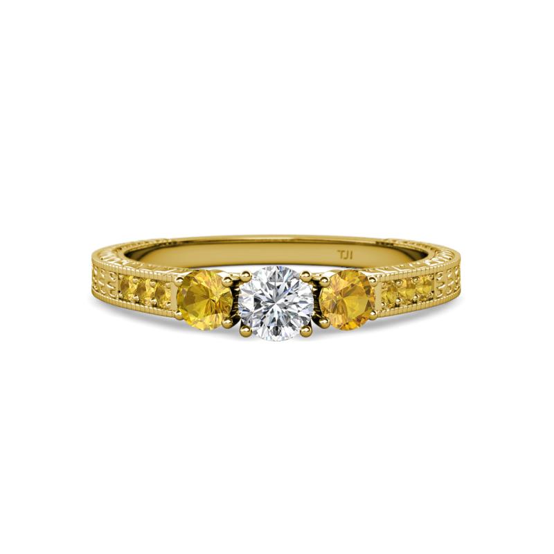 Round Diamond and Citrine 3/4 ctw Milgrain Womens Three Stone Engagement Ring with Citrine on Side Bar 14K Yellow Gold More Details ...