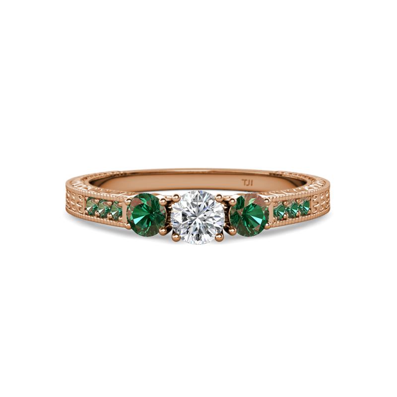 Round Diamond and Lab Created Alexandrite 7/8 ctw Milgrain Womens Three Stone Engagement Ring with Lab Created Alexandrite on Side Bar 14K Rose Gold More Details ...