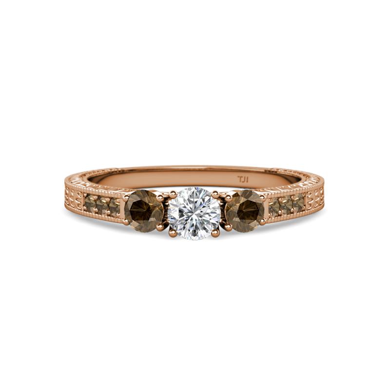 Round Diamond and Smoky Quartz 3/4 ctw Milgrain Womens Three Stone Engagement Ring with Smoky Quartz on Side Bar 14K Rose Gold More Details ...