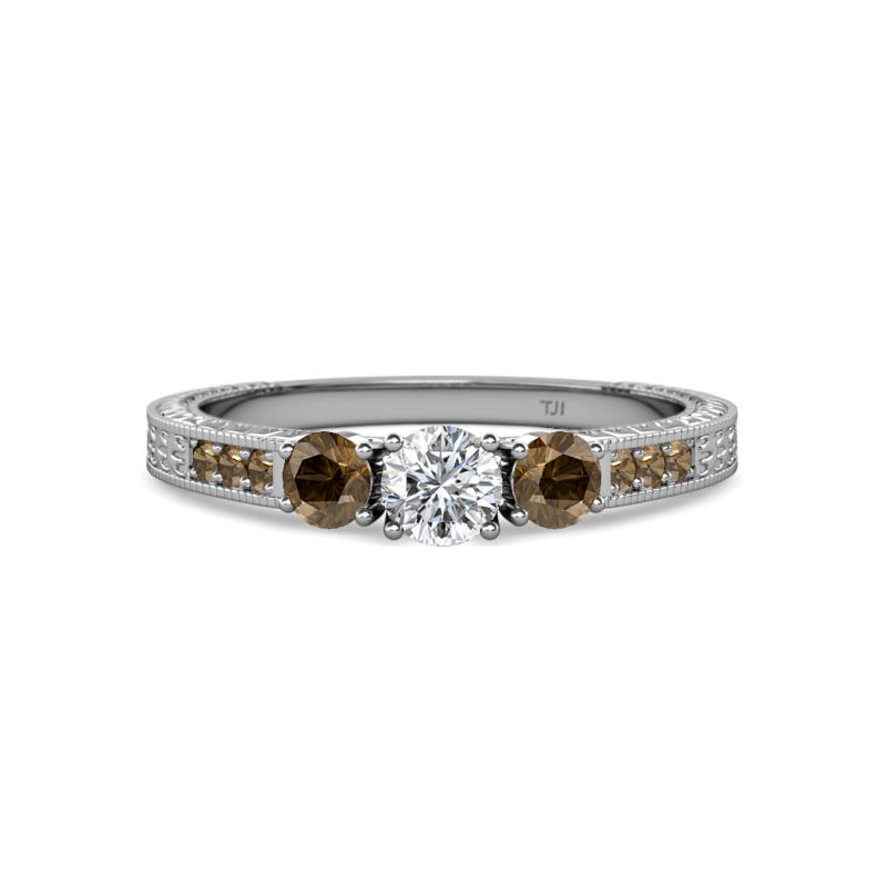Round Diamond and Smoky Quartz 3/4 ctw Milgrain Womens Three Stone Engagement Ring with Smoky Quartz on Side Bar 925 Sterling Silver More Details ...