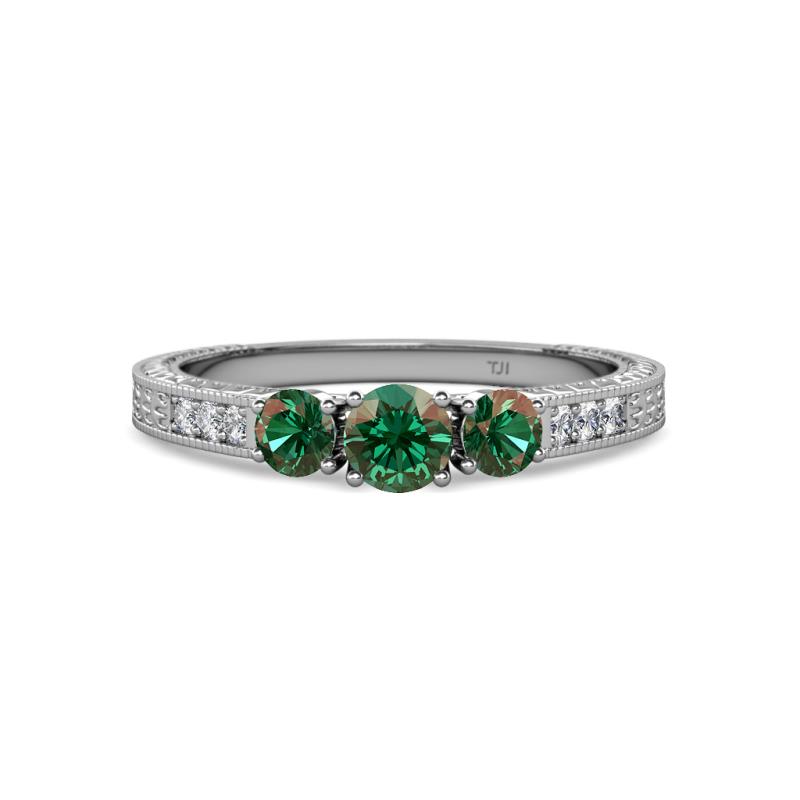 Round Lab Created Alexandrite Milgrain Womens Three Stone Engagement Ring with Diamond on Side Bar 7/8 ctw 14K White Gold More Details ...