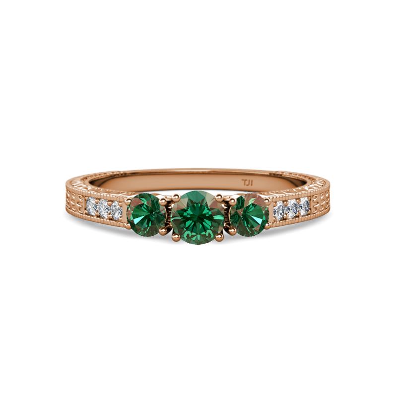 Round Lab Created Alexandrite Milgrain Womens Three Stone Engagement Ring with Diamond on Side Bar 7/8 ctw 14K Rose Gold More Details ...