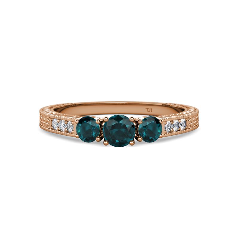 Round London Blue Topaz Milgrain Womens Three Stone Engagement Ring with Diamond on Side Bar 7/8 ctw 14K Rose Gold More Details ...