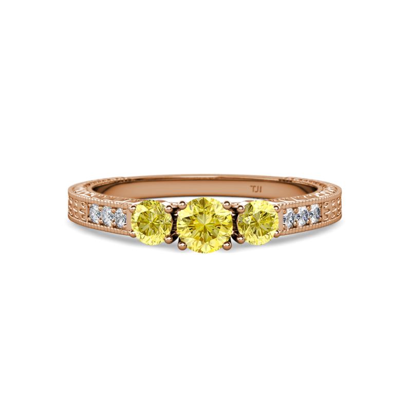 Round Yellow Sapphire Milgrain Womens Three Stone Engagement Ring with Diamond on Side Bar 7/8 ctw 14K Rose Gold More Details ...