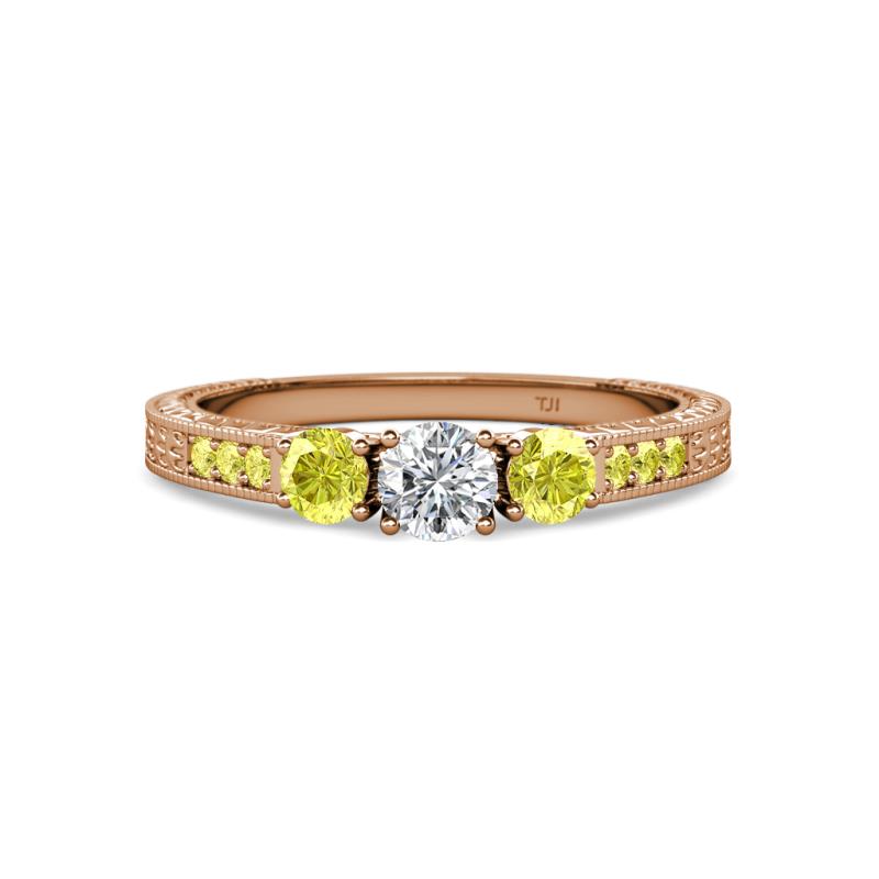 Round Yellow and White Diamond 3/4 ctw Milgrain Womens Three Stone Engagement Ring with Yellow Diamond on Side Bar 14K Rose Gold More Details ...
