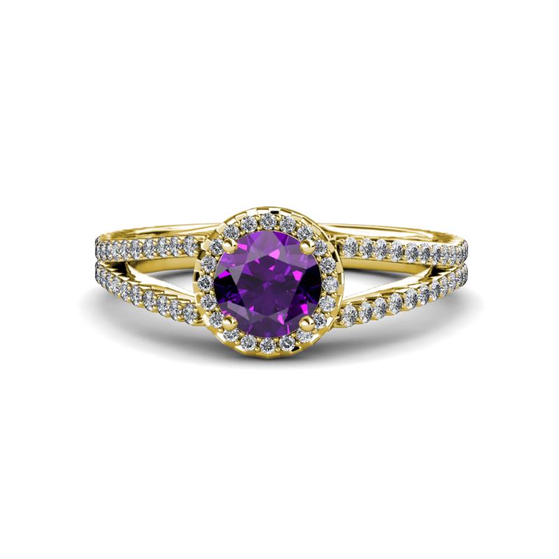 Amethyst and Diamond Womens Halo Engagement Ring 1.38 ctw 14K Yellow Gold More Details ...