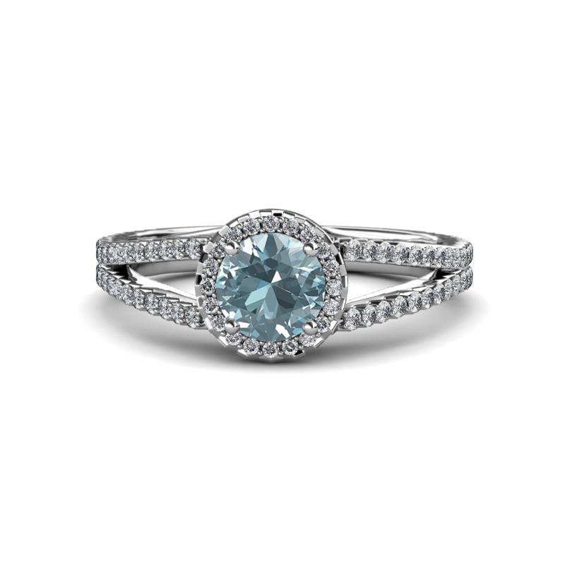 Aquamarine and Diamond Womens Halo Engagement Ring 1.38 ctw Platinum More Details ...