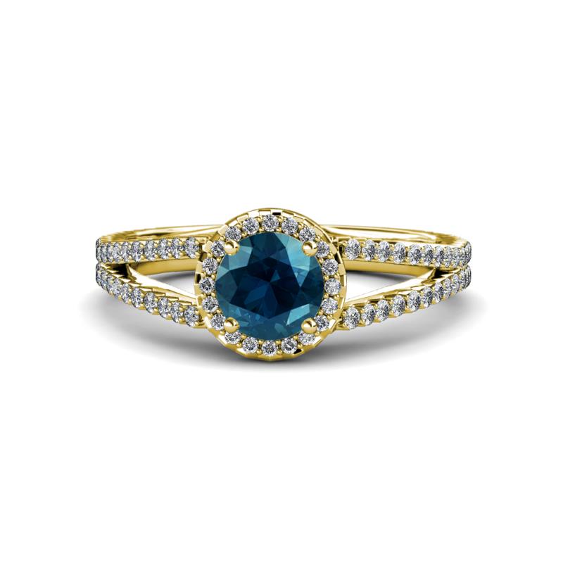 Blue and White Diamond Womens Halo Engagement Ring 1.38 ctw 18K Yellow Gold More Details ...