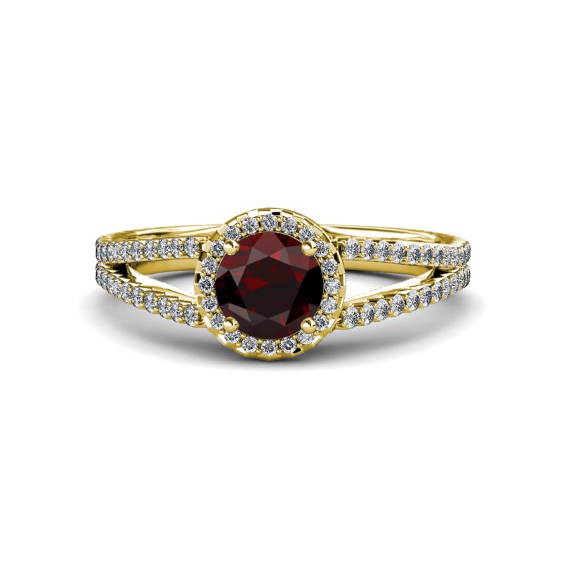 Red Garnet and Diamond Womens Halo Engagement Ring 1.43 ctw 14K Yellow Gold More Details ...