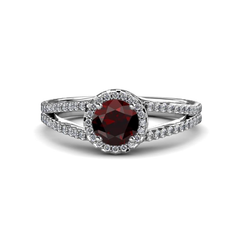 Red Garnet and Diamond Womens Halo Engagement Ring 1.43 ctw 18K White Gold More Details ...