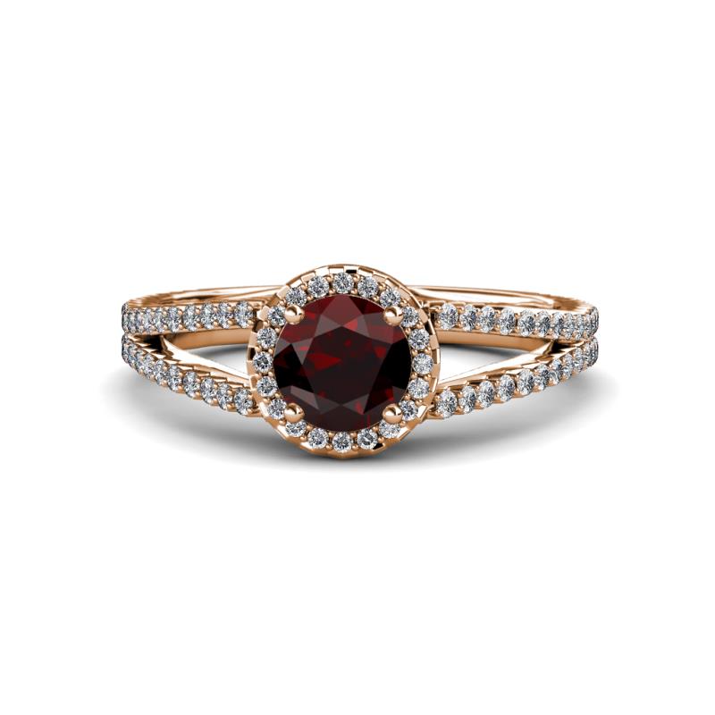Red Garnet and Diamond Womens Halo Engagement Ring 1.43 ctw 18K Rose Gold More Details ...