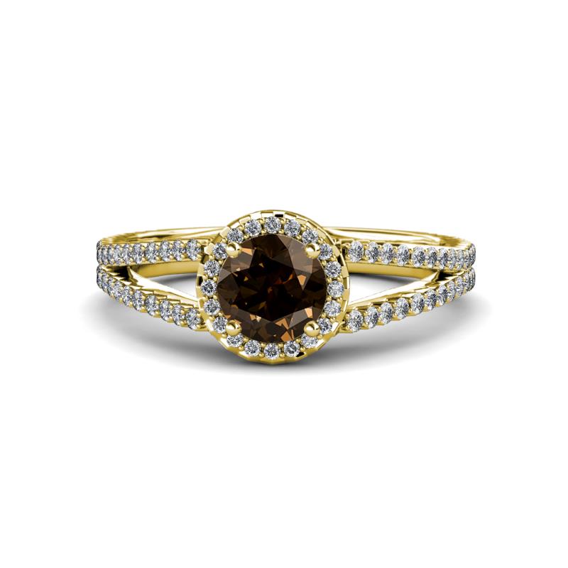 Smoky Quartz and Diamond Womens Halo Engagement Ring 1.38 ctw 14K Yellow Gold More Details ...