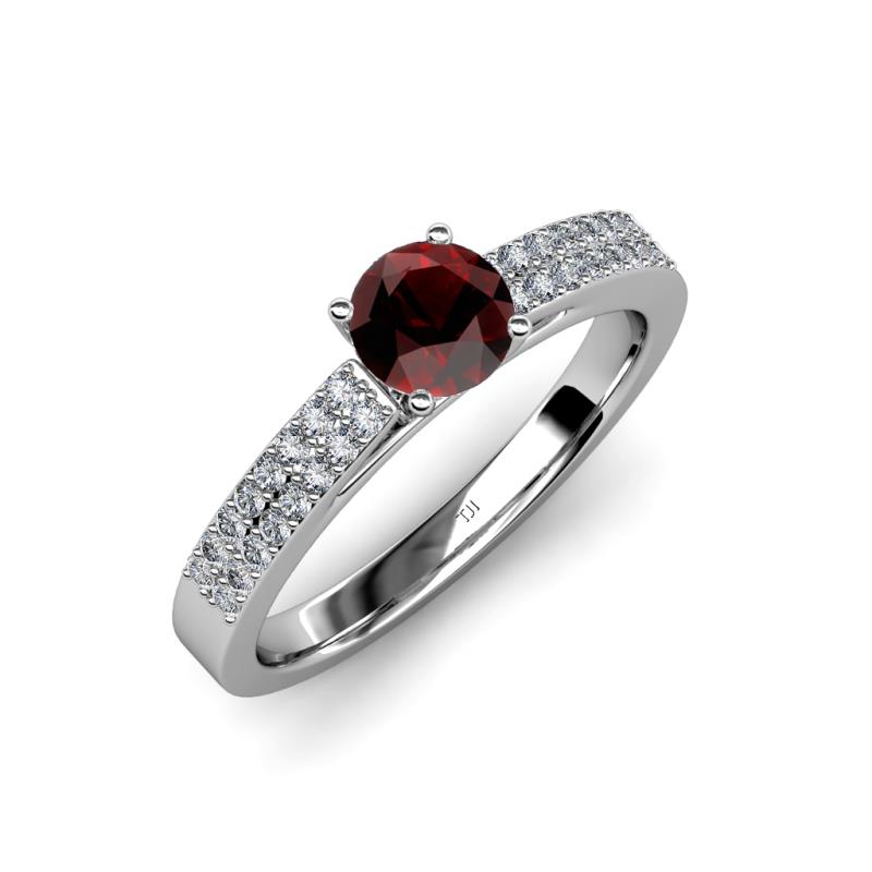 Red Garnet and Diamond Double Row Womens Engagement Ring 1.37 ctw 14K White Gold More Details ...