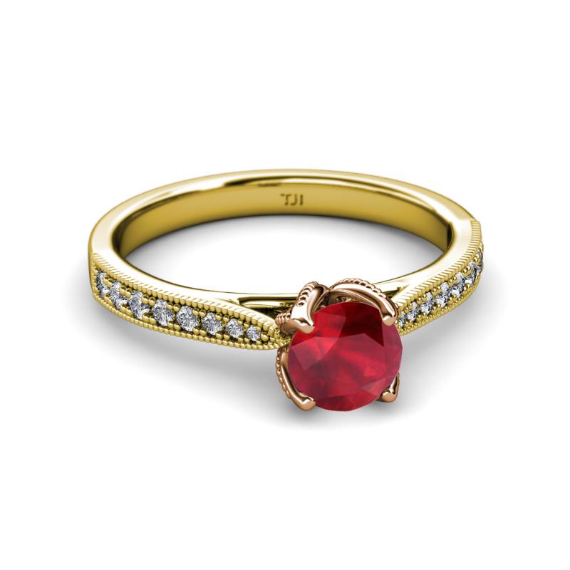 Ruby and Diamond Two Tone Womens Solitaire Plus Engagement Ring with Milgrain Work 1.11 ctw 14K Yellow Gold More Details ...
