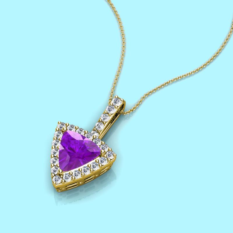 Trillion Cut Amethyst and Round Diamond 1 1/3 ctw Womens Halo Pendant Necklace 14K Yellow Gold.Included 16 Inches 14K Yellow Gold Chain More Details ...