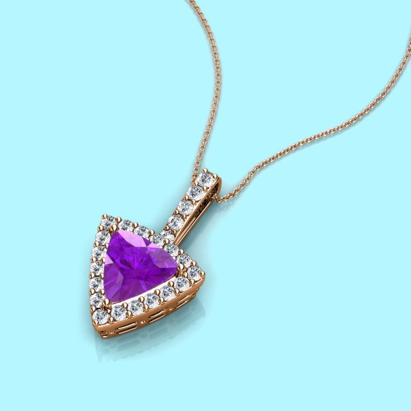 Trillion Cut Amethyst and Round Diamond 1 1/3 ctw Womens Halo Pendant Necklace 14K Rose Gold.Included 16 Inches 14K Rose Gold Chain More Details ...