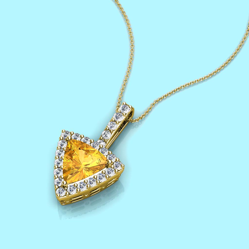 Trillion Cut Citrine and Round Diamond 1 1/4 ctw Womens Halo Pendant Necklace 14K Yellow Gold.Included 16 Inches 14K Yellow Gold Chain More Details ...