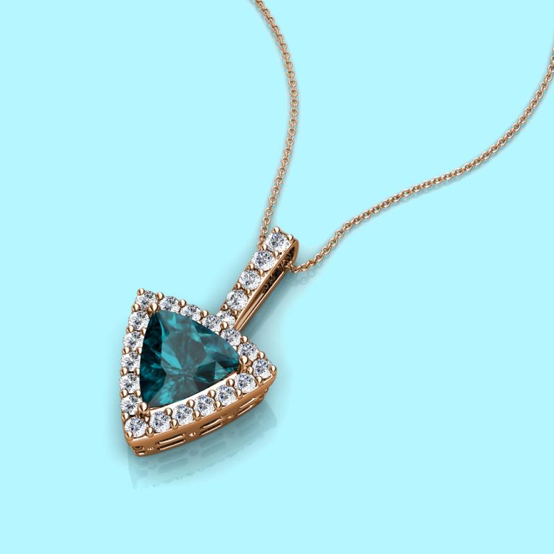 Trillion Cut London Blue Topaz and Round Diamond 1 3/4 ctw Womens Halo Pendant Necklace 14K Rose Gold.Included 16 Inches 14K Rose Gold Chain More Details ...