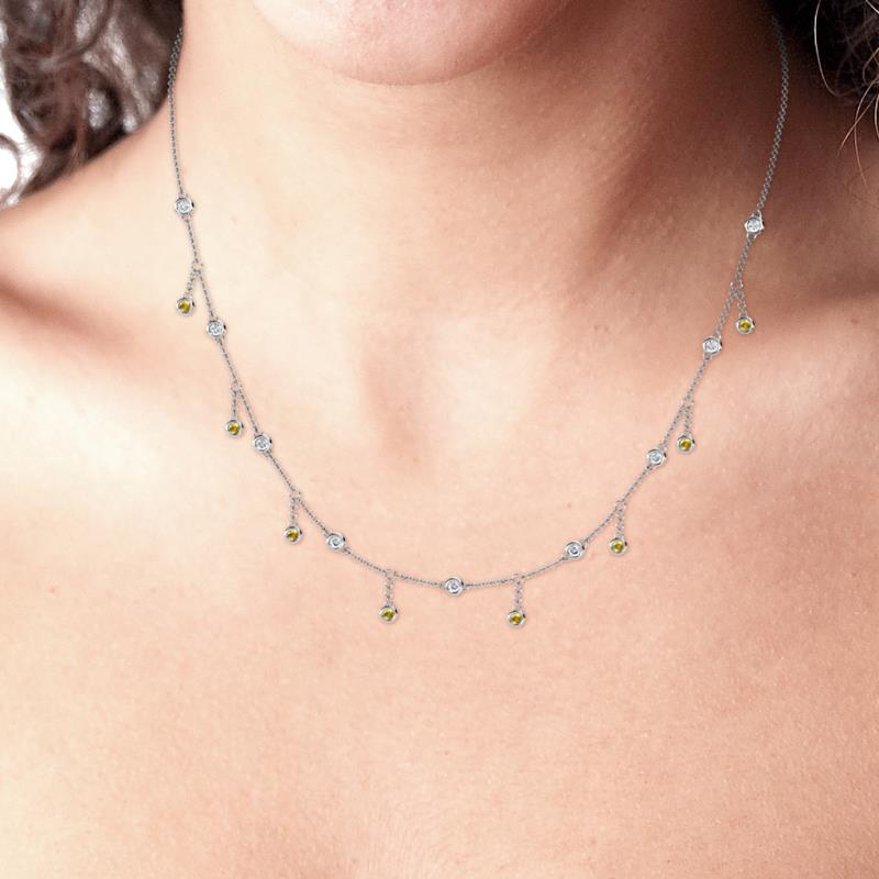 17 Station Round Citrine and Diamond 1/2 ctw Womens Drop Station Necklace 14K White Gold More Details ...