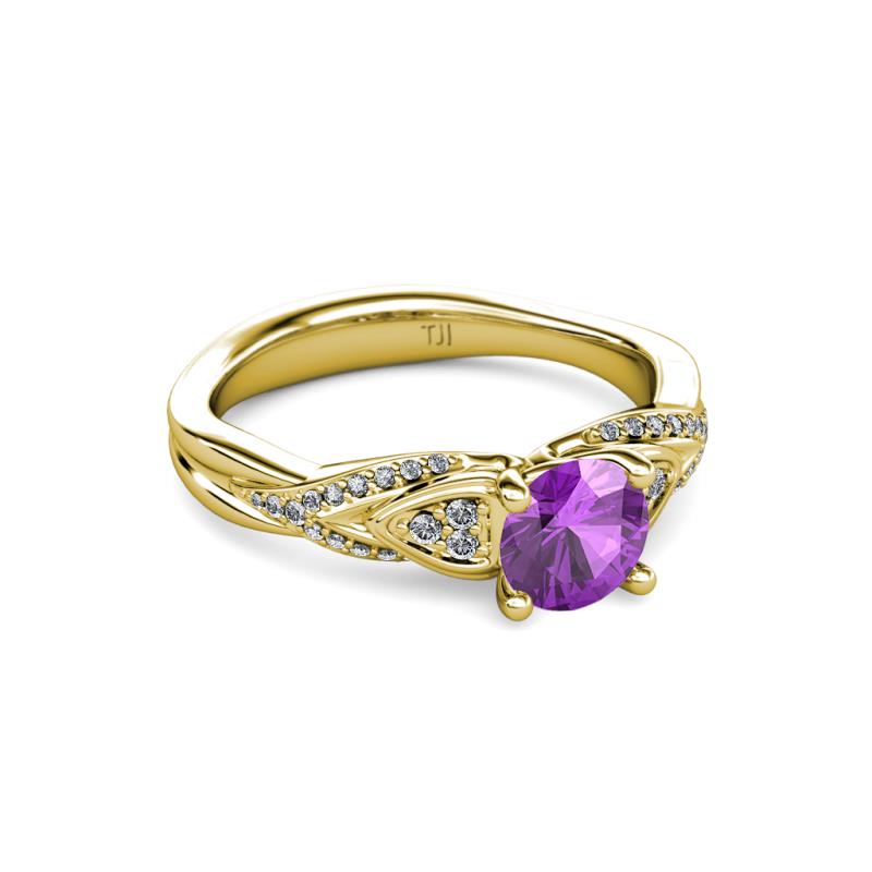1 ctw Round Amethyst and Diamond Womens Engagement Ring 14K Yellow Gold More Details ...