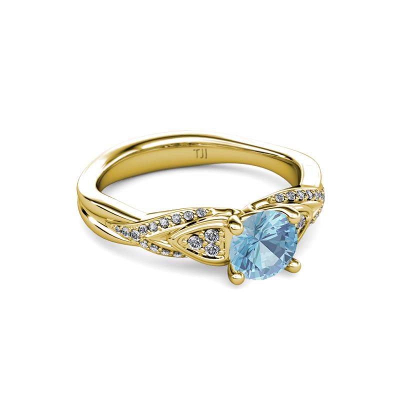 1 ctw Round Aquamarine and Diamond Womens Engagement Ring 14K Yellow Gold More Details ...