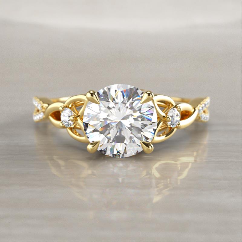 1.21 ctw IGI Certified Round Lab Grown Diamond (VS/EF) set in Tiger Claw Four Prong and Side Lab Grown Diamond Women Celtic Love Knot Entwined Engagement Ring in 10K Yellow Gold More Details ...