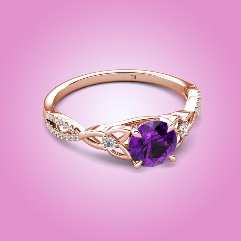 Round Amethyst set in Tiger Claw Four Prong and Side Round Natural Diamond of 1.08 ctw Women Celtic Love Knot Entwined Engagement Ring in 18K Rose Gold More Details ...