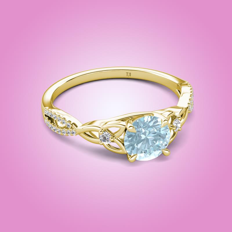 Round Aquamarine set in Tiger Claw Four Prong and Side Round Natural Diamond of 1.08 ctw Women Celtic Love Knot Entwined Engagement Ring in 18K Yellow Gold More Details ...