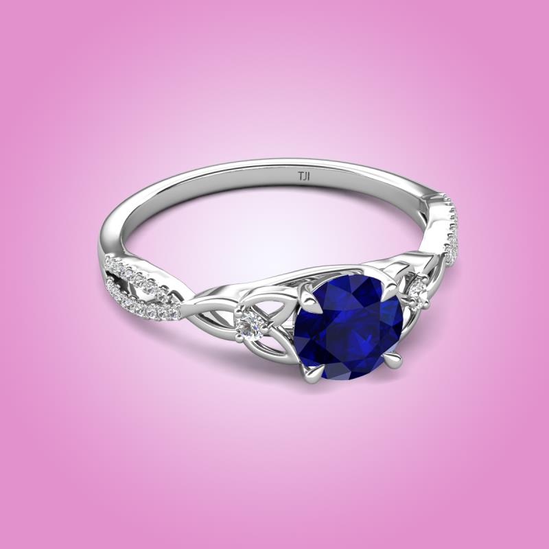 Round Blue Sapphire set in Tiger Claw Four Prong and Side Round Natural Diamond of 1.36 ctw Women Celtic Love Knot Entwined Engagement Ring in 18K White Gold More Details ...