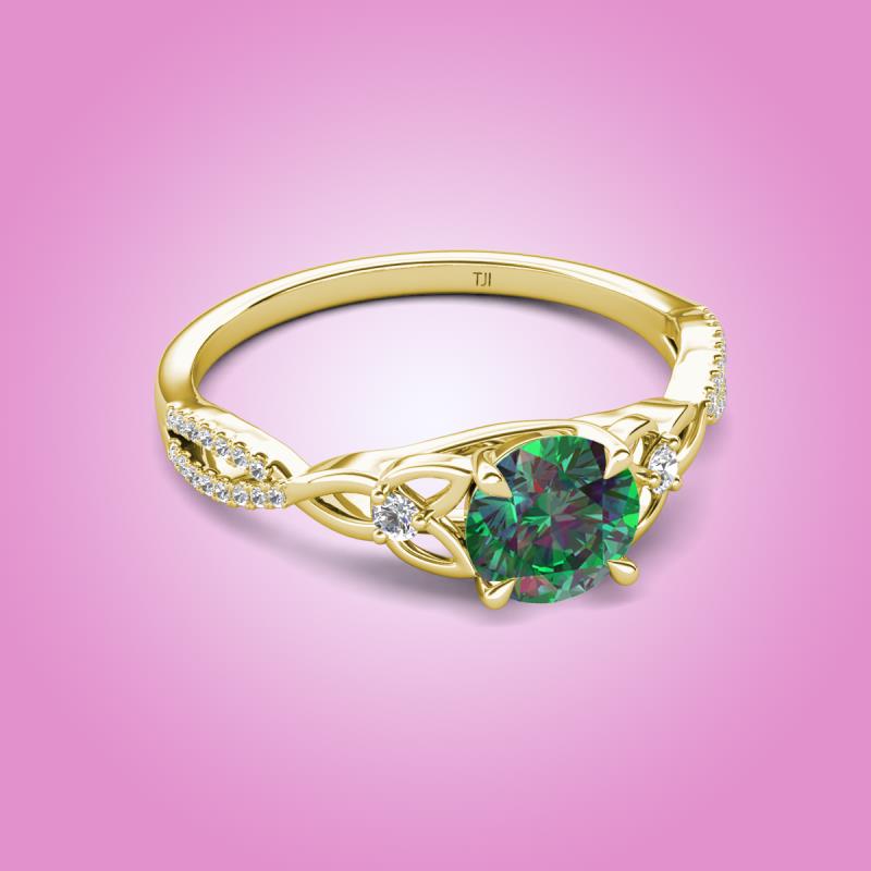 Round Lab Created Alexandrite set in Tiger Claw Four Prong and Side Round Natural Diamond of 1.21 ctw Women Celtic Love Knot Entwined Engagement Ring in 18K Yellow Gold More Details ...