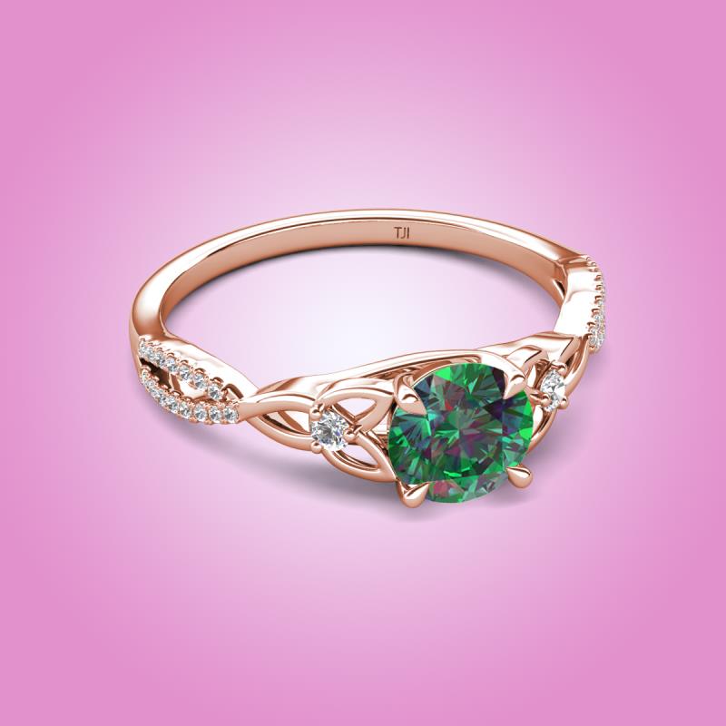 Round Lab Created Alexandrite set in Tiger Claw Four Prong and Side Round Natural Diamond of 1.21 ctw Women Celtic Love Knot Entwined Engagement Ring in 18K Rose Gold More Details ...