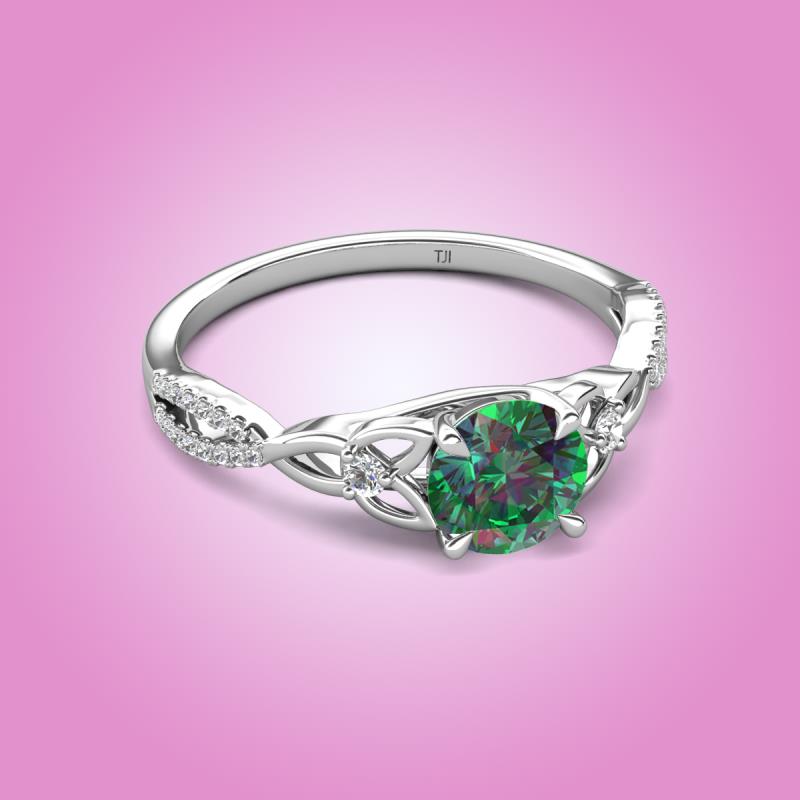 Round Lab Created Alexandrite set in Tiger Claw Four Prong and Side Round Natural Diamond of 1.21 ctw Women Celtic Love Knot Entwined Engagement Ring in Sterling Silver More Details ...