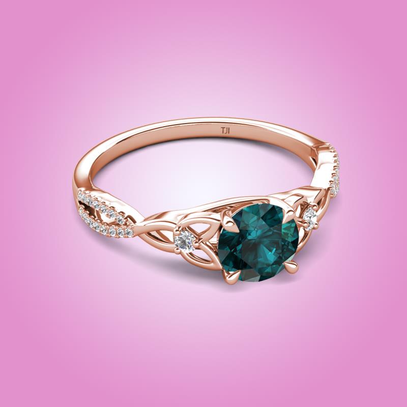 Round London Blue Topaz set in Tiger Claw Four Prong and Side Round Natural Diamond of 1.16 ctw Women Celtic Love Knot Entwined Engagement Ring in 10K Rose Gold More Details ...