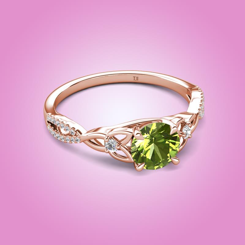 Round Peridot set in Tiger Claw Four Prong and Side Round Natural Diamond of 1.31 ctw Women Celtic Love Knot Entwined Engagement Ring in 10K Rose Gold More Details ...